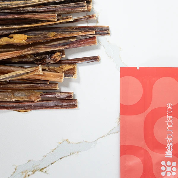 Are you tired of finding chewed-up shoes or nibbled furniture?  Redirect your puppy’s natural passion for chewing with Life’s Abundance Pork Bully Sticks! These additive-free sticks aren’t your average chew – they’re flavorful, wholesome and made especially for your dog’s chompers. Besides being a tasty distraction, these sticks come packed with dental health benefits.