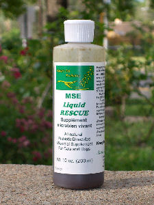 MSE Liquid Rescue is a liquid probiotic, vitamin and enzyme supplement that comes in a convenient 10 ounce squeeze bottle. This product and MSE Microbial Paste Rescue contain the same microorganisms as the MSE Daily Boost and MSE Natural Defense, but at approximately four and two times the concentration of MSE Daily Boost and MSE Natural Defense, respectively.